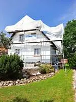 Un ravalement de façade commence par un diagnostic minutieux pour identifier les zones endommagées et les besoins spécifiques de la surface. Ensuite, un échafaudage aux normes est installé pour assurer la sécurité des interventions. Les travaux de préparation incluent un nettoyage haute pression pour éliminer les salissures et les moisissures, ainsi que la réparation des fissures et des zones abîmées avec de l'enduit. Une sous-couche de fond et d'imprégnation est ensuite appliquée pour préparer la surface à recevoir la peinture de finition.